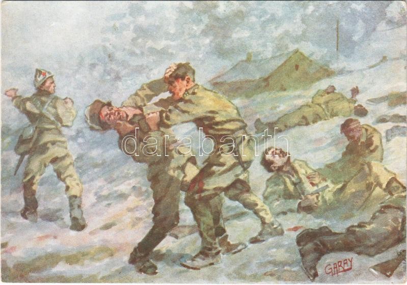 Beschreibung: Burgucs Pál szakaszvezető géppisztolyával egymaga semmisített meg egy héttagú szövjetjárőrt / WWII Hungarian military art postcard s: Garay