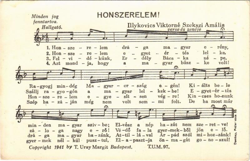 Honszerelem! Illykovics Viktorné Szekszi Amália verse és zenéje. T. Ur... https://www.darabanth.com/de/396-Fernauktion/396.0/Ansichtskarten/Militaria~1500083/Honszerelem-Illykovics-Viktorne-Szekszi-Amalia-verse-es-zeneje-T-Uray-Margit-Hungarian-mili~II2412174
