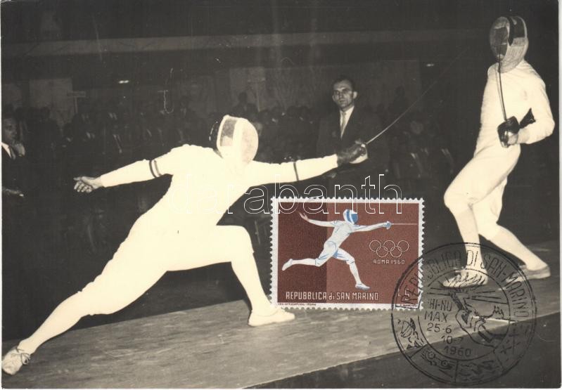 Beschreibung: Giochi XVII Olimpiade Roma 1960 / 1960 Summer Olympics, Games of the XVII Olympiad in Rome, fencing + "1960 Repubblica di San Marino" So. Stpl.