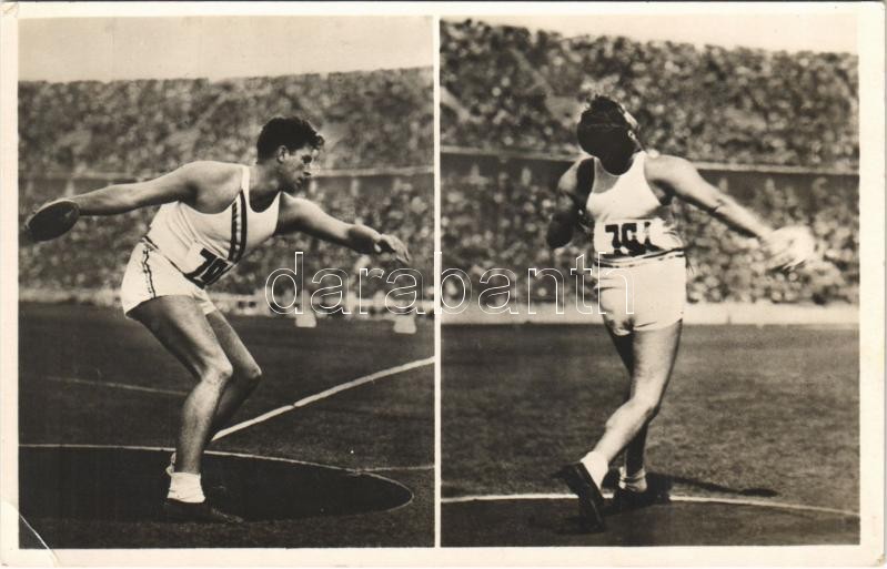 Olympische Spiele Berlin 1936. Carpenter (USA) Erringer der Godlenen Medaille im Diskuswerfen (50,45 m) Presse Photo / 1936 Summer Olympics, Carpenter (USA) wins the gold medal in discus throw (EK)