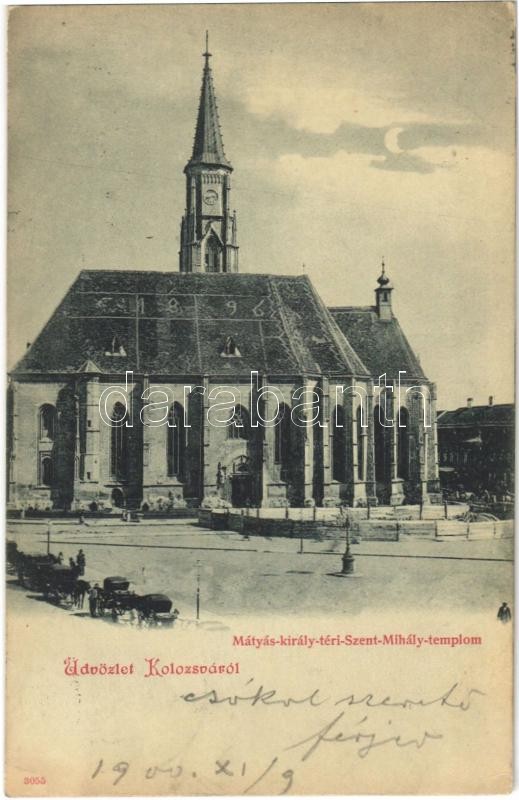 1900 Kolozsvár, Cluj; Mátyás király téri Szent Mihály templom, a szobo... https://www.darabanth.com/de/396-Fernauktion/396.0/Ansichtskarten/Siebenburgen~1500005/1900-Kolozsvar-Cluj-Matyas-kiraly-teri-Szent-Mihaly-templom-a-szobor-epites-elott-squ~II2410090