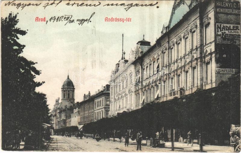 1910 Arad, Andrássy tér, reklámposzterek a ház falán: Kilényi, Weinber... https://www.darabanth.com/de/396-Fernauktion/396.0/Ansichtskarten/Siebenburgen~1500005/1910-Arad-Andrassy-ter-reklamposzterek-a-haz-falan-Kilenyi-Weinberger-Janos-Nadler-Lajo~II2411172