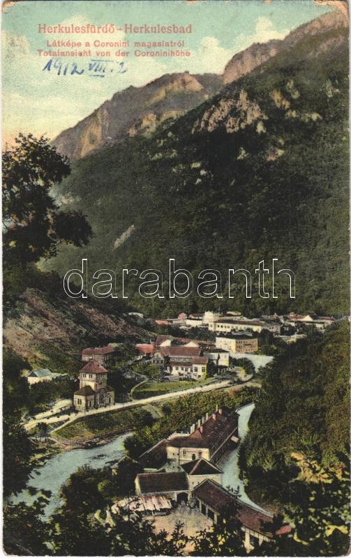 1912 Herkulesfürdő, Baile Herculane; látkép a Coronini magaslatról / g... https://www.darabanth.com/de/396-Fernauktion/396.0/Ansichtskarten/Siebenburgen~1500005/1912-Herkulesfurdo-Baile-Herculane-latkep-a-Coronini-magaslatrol-general-view-EK~II2411361