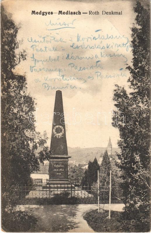1918 Medgyes, Mediasch, Medias; Roth Denkmal / emlékmű / monument (EB) https://www.darabanth.com/de/396-Fernauktion/396.0/Ansichtskarten/Siebenburgen~1500005/1918-Medgyes-Mediasch-Medias-Roth-Denkmal-emlekmu-monument-EB~II2409287