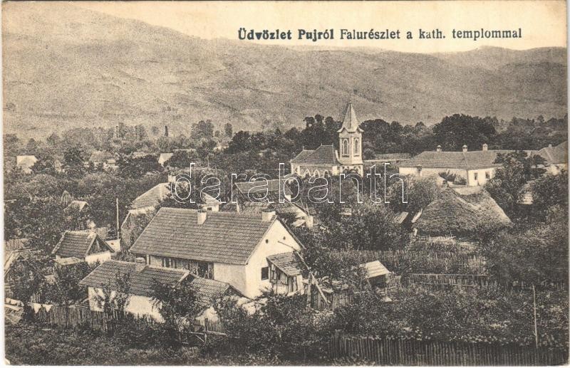 1920 Puj, Pui; falurészlet a katolikus templommal / church https://www.darabanth.com/de/396-Fernauktion/396.0/Ansichtskarten/Siebenburgen~1500005/1920-Puj-Pui-falureszlet-a-katolikus-templommal-church~II2409107