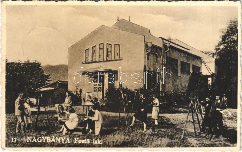 1941 Nagybánya, Baia Mare; Festő iskola / art school, painters https://www.darabanth.com/de/396-Fernauktion/396.0/Ansichtskarten/Siebenburgen~1500005/1941-Nagybanya-Baia-Mare-Festo-iskola-art-school-painters~II2409264
