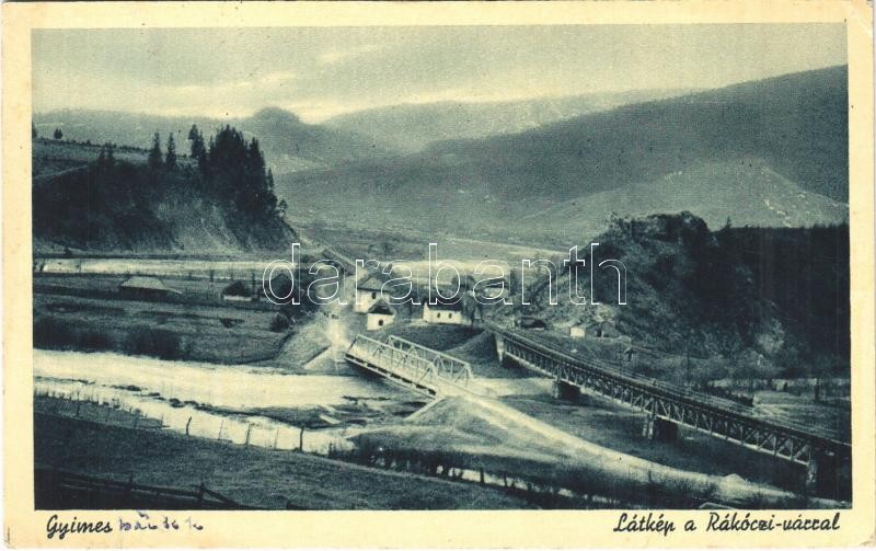 1942 Gyimes, Ghimes; vasúti híd, Rákóczi vár / railway bridge, castle ... https://www.darabanth.com/de/396-Fernauktion/396.0/Ansichtskarten/Siebenburgen~1500005/1942-Gyimes-Ghimes-vasuti-hid-Rakoczi-var-railway-bridge-castle-EK~II2409806