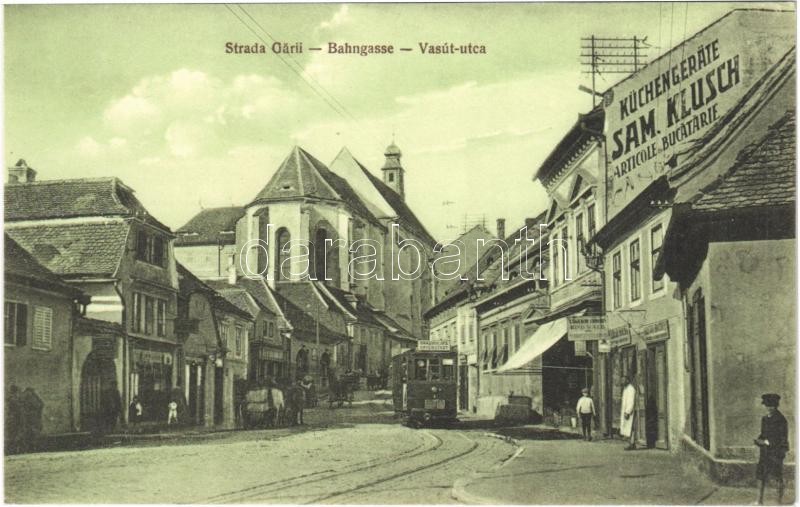 Nagyszeben, Hermannstadt, Sibiu; Strada Garii / Bahngasse / Vasút utca... https://www.darabanth.com/de/396-Fernauktion/396.0/Ansichtskarten/Siebenburgen~1500005/Nagyszeben-Hermannstadt-Sibiu-Strada-Garii-Bahngasse-Vasut-utca-villamos-Sam-Klusch-uzle~II2409292
