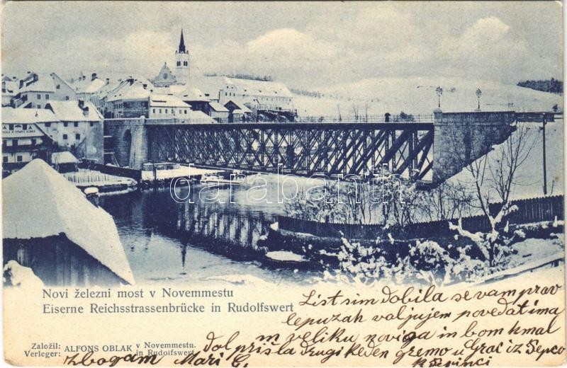 Beschreibung: 1899 (Vorläufer) Novo mesto, Rudolfovo; Novi zelezni most v Novemmestu / Eiserne Reichsstrassenbrücke in Rudolfswert / new railway bridge in winter