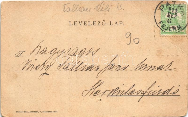 Beschreibung: 1911 Pátka, Fülöpmajor, Tallián Vilmos kastélya és levele (fa)