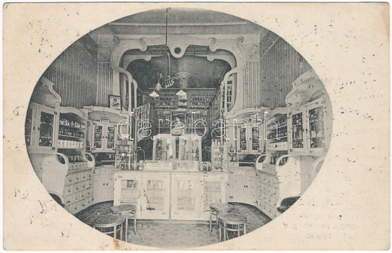 Beschreibung: 1916 Kaposvár, Zloczki György Korona gyógyszertára, belső. Korona utca 10. (ázott sarok / wet corner)