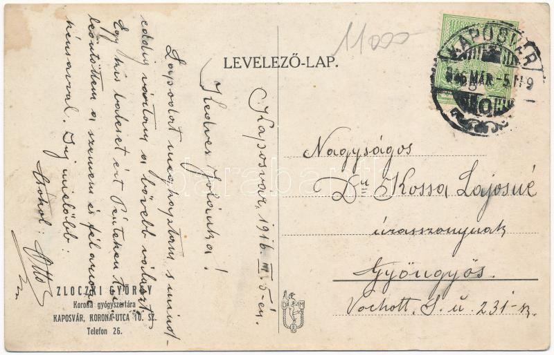 1916 Kaposvár, Zloczki György Korona gyógyszertára, belső. Korona utca... https://www.darabanth.com/de/396-Fernauktion/396.0/Ansichtskarten/Ungarn~1500004/1916-Kaposvar-Zloczki-Gyorgy-Korona-gyogyszertara-belso-Korona-utca-10-azott-sarok-wet-~II2409635
