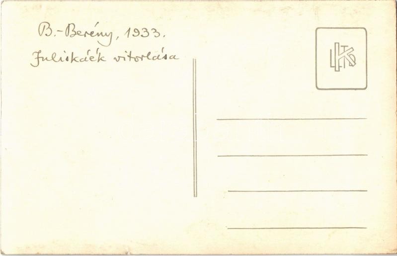 1933 Balatonberény, Juliskáék vitorláshajója. photo https://www.darabanth.com/de/396-Fernauktion/396.0/Ansichtskarten/Ungarn~1500004/1933-Balatonbereny-Juliskaek-vitorlashajoja-photo~II2408379