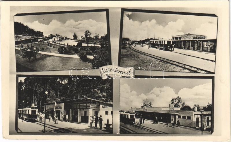 Beschreibung: 1950 Budapest XII. Széchenyi hegyi Úttörő Gyermekvasút, Előre vasútállomás, vonat