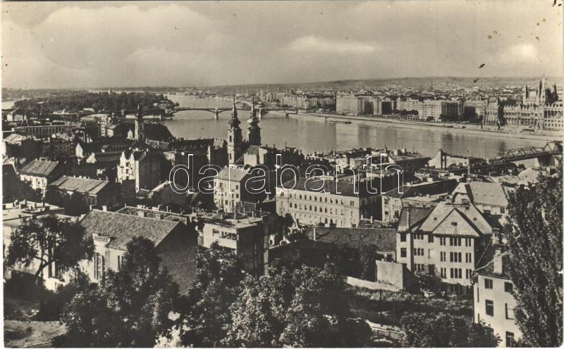 Beschreibung: Budapest I. Tabán, látkép a Halászbástyáról, Kossuth híd. Képzőművészeti Alap Kiadóvállalat