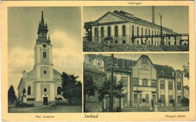 Sarkad, Református templom, cukorgyár, polgári iskola. Gettler Andor k... https://www.darabanth.com/de/396-Fernauktion/396.0/Ansichtskarten/Ungarn~1500004/Sarkad-Reformatus-templom-cukorgyar-polgari-iskola-Gettler-Andor-kiadasa~II2404712