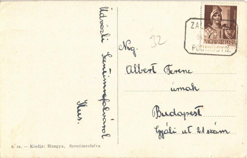 Beschreibung: Szentimrefalva, Római katolikus templom, Hősök ligete, Hangya üzlete és saját kiadása + "ZALADALSA POSTAÜGYN." (EK)