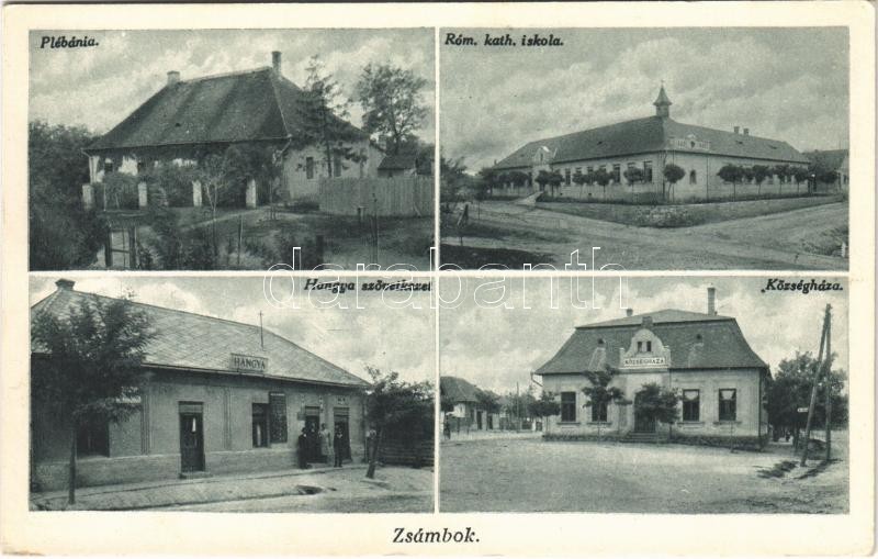 Beschreibung: Zsámbok, plébánia, Római katolikus iskola, községháza, Hangya szövetkezet üzlete és saját kiadása