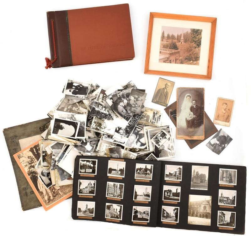 Beschreibung: Nagy vegyes fotó tétel: kb. 700 db fotó ömlesztve, közte 2 db régi fotóalbum, egy fénykép üvegezett keretben, keményhátú műtermi fotók, stb.
