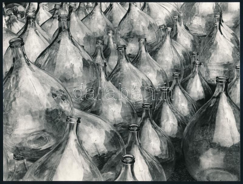 Beschreibung: cca 1979 Vincze János (1922-1999) kecskeméti fotóművész hagyatékából, jelzés nélküli vintage fotóművészeti alkotás (Üvegek), 17,8x23,6 cm