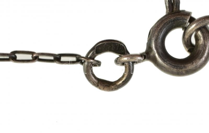 Beschreibung: 1970-es évekbeli ezüst(Ag) nyaklánc borostyán kövekkel, ezüst függőkkel, jelzett, patinás állapotban, h: 46 cm, bruttó 19,53 g