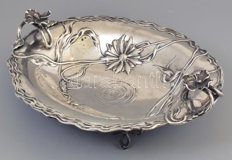 Szecessziós ezüst kínáló tál. Ezüst (Ag). Lábakon. 635 g XX. sz. eleje... https://www.darabanth.com/de/396-Fernauktion/396.0/Juwelen/Juwelen~1000023/Szecesszios-ezust-kinalo-tal-Ezust-Ag-Labakon-635-g-XX-sz-eleje-magyar-FR-mesterjeg~II2403939