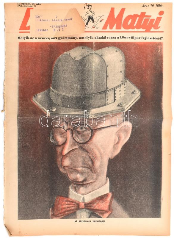 1953 Ludas Matyi IX. évf. 47. sz., 1953. november 19., Szerk.: Gádor B... https://www.darabanth.com/de/396-Fernauktion/396.0/Kunst-Dokumente-andere-Sammelgebiete/Drucksachen~500033/1953-Ludas-Matyi-IX-evf-47-sz-1953-november-19-Szerk-Gador-Bela-Tabi-Laszlo-a-ciml~II2400377