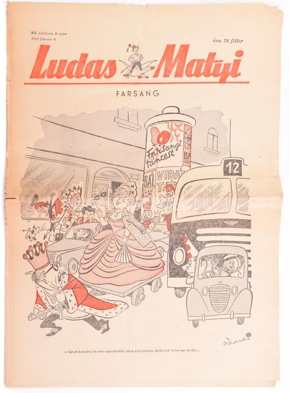 1956 Ludas Matyi XII. évf. 6. sz., 1956. feburár 9., Szerk.: Gádor Bél... https://www.darabanth.com/de/396-Fernauktion/396.0/Kunst-Dokumente-andere-Sammelgebiete/Drucksachen~500033/1956-Ludas-Matyi-XII-evf-6-sz-1956-feburar-9-Szerk-Gador-Bela-Gaspar-Antal-Tabi-LC3~II2400412