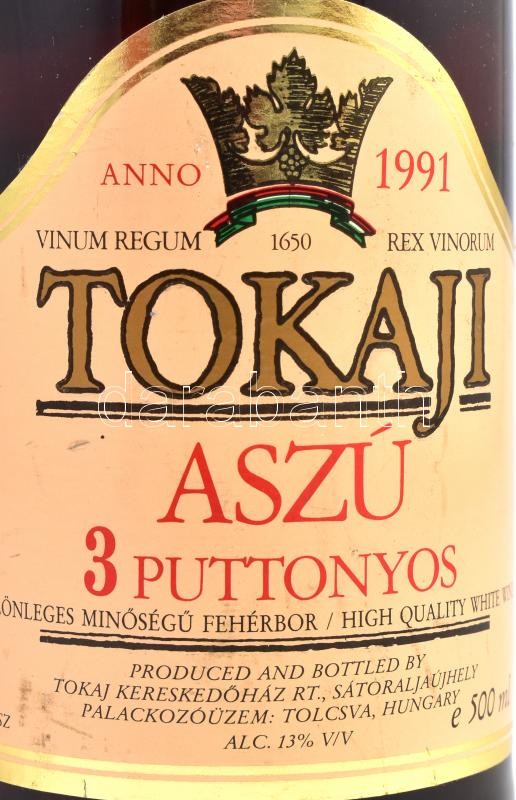 1991 Tokaji aszú 3 puttonyos bontatlan palack fehérbor. Tokaj keresked... https://www.darabanth.com/de/396-Fernauktion/396.0/Kunst-Dokumente-andere-Sammelgebiete/Vintage-Weine-Getranke~500016/1991-Tokaji-aszu-3-puttonyos-bontatlan-palack-feherbor-Tokaj-kereskedohaz-enyhen-zavaros~II2406707