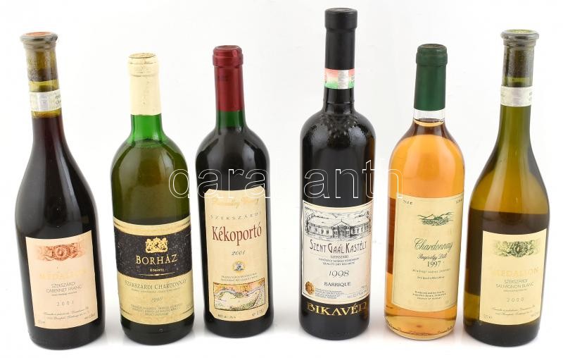 Beschreibung: 6 üveg Szekszárdi muzeális bor: Medalion Sauvignon Blanc, Vinarium Chardonnay, Rosewalley kékoportó, Borház chardonnay, Szent Gál barrique