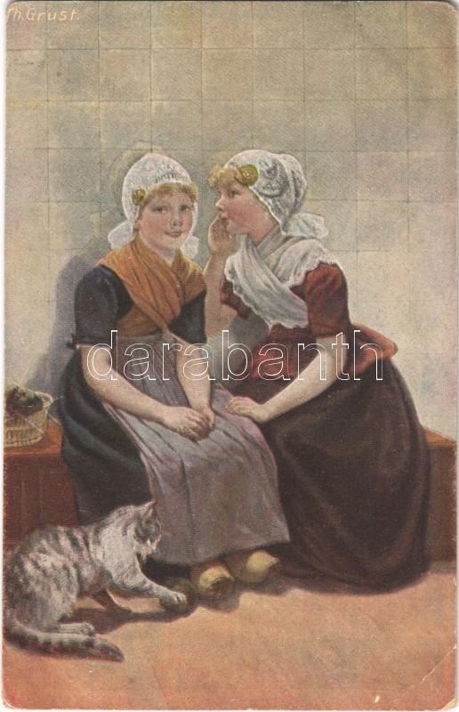 1919 Das Geheimnis / Children art postcard with cat s: Th. Grust (EK) https://www.darabanth.com/de/397-Fernauktion/397.0/Ansichtskarten/Kinder~1000082/1919-Das-Geheimnis-Children-art-postcard-with-cat-s-Th-Grust-EK~II2422535