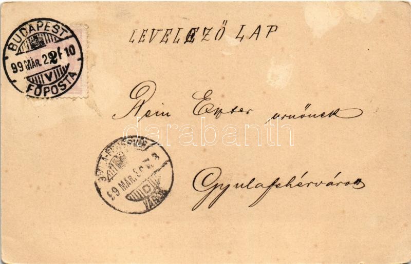 Beschreibung: 1899 Coeur Dame. Art Nouveau lady with hearts, unsigned Raphael Kirchner litho (felületi sérülés / surface damage)