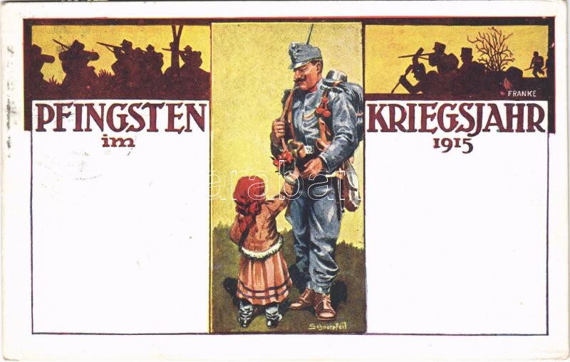 1915 Pfingsten im Kriegsjahr 1915. Offizielle Postkarte für das Rote Kreuz, Kriegsfürsorgeamt und Kriegshilfsbüro / WWI Austro-Hungarian K.u.K. military art postcard with Pentecost greeting s: Franke, Schnorpfeil