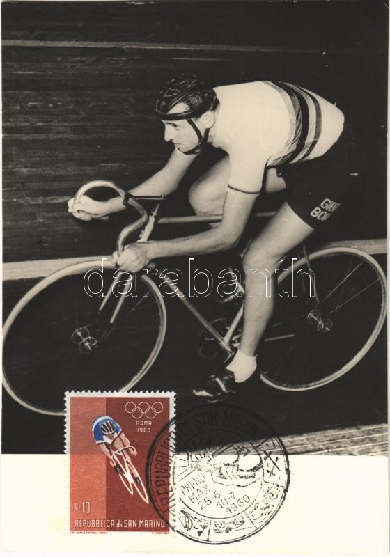 Beschreibung: Giochi XVII Olimpiade Roma 1960 / 1960 Summer Olympics, Games of the XVII Olympiad in Rome, cycling + "1960 Repubblica di San Marino" So. Stpl.