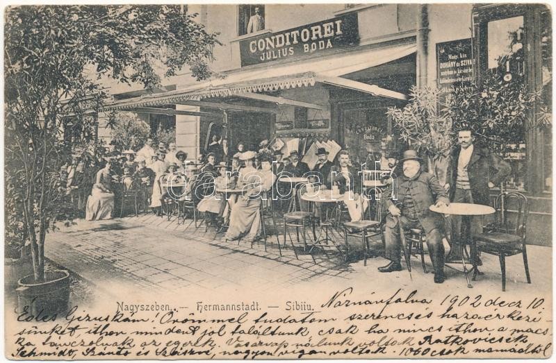 1902 Nagyszeben, Hermannstadt, Sibiu; Julius Boda cukrászda, terasz / ... https://www.darabanth.com/de/397-Fernauktion/397.0/Ansichtskarten/Siebenburgen~1000005/1902-Nagyszeben-Hermannstadt-Sibiu-Julius-Boda-cukraszda-terasz-Conditorei-confectionery-sh~II2420516