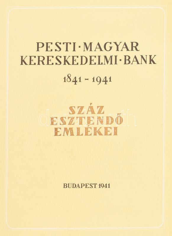 Pesti Magyar Kereskedelmi Bank 1841-1941. Száz esztendő emlékei. Bp., 1941, Pesti Magyar Kereskedelmi Bank. Kiadói aranyozott egészbőr kötésben, kopásokkal