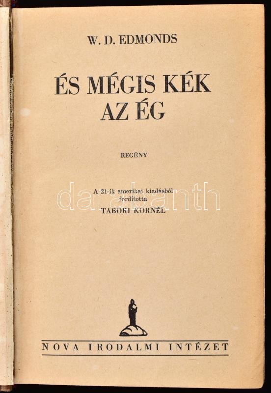 Walter D. Edmonds: És mégis kék az ég. Ford.: Tábori Kornél. Bp., 1941, Nova Irodalmi Intézet. 283 p. Kiadói aranyozott félvászon-kötés, kissé szakadt papír védőborítóban.