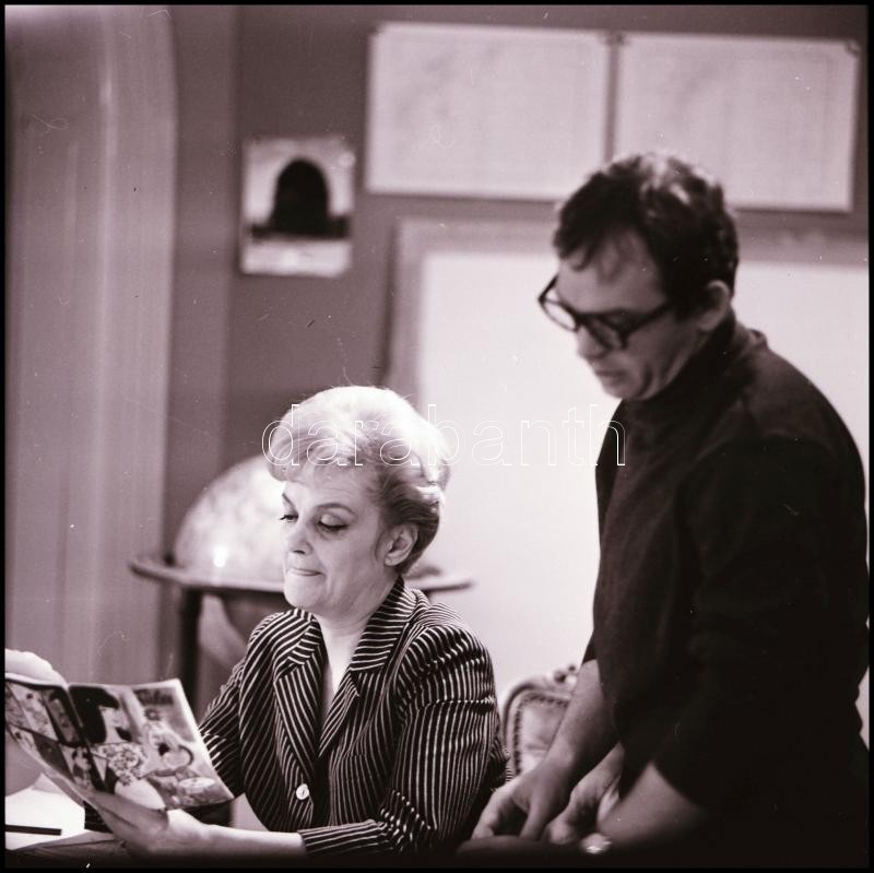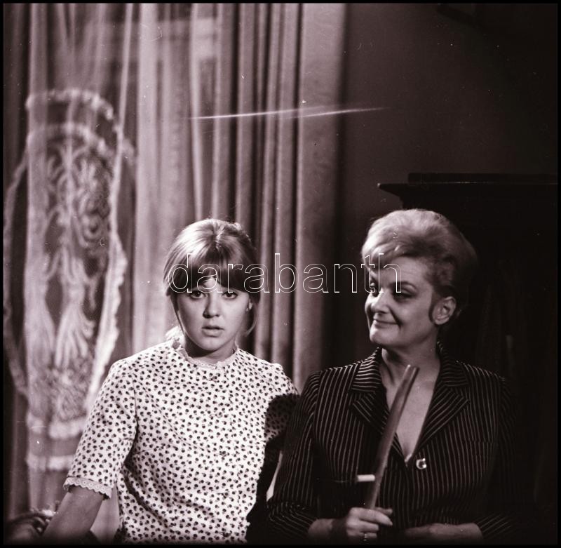 cca 1968 Tolnay Klári, Halász Judit és Bodrogi Gyula színészek, Kotnyek Antal (1921-1990) budapesti fotóriporter hagyatékából 13 db vintage NEGATÍV, 6x6 cm