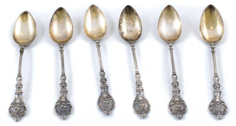 Beschreibung: 6 db ezüsz (Ag) kiskanál, jelzett, apró kopásnyomokkal, díszdobozban, h: 11 cm