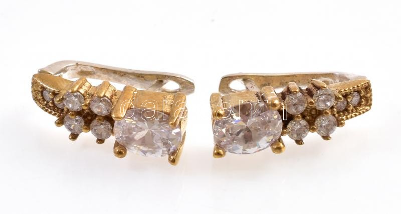 Beschreibung: Aranyozott ezüst(Ag) fülbevalópár, fehér kövekkel, jelzett, h: 2 cm, bruttó: 9,34 g
