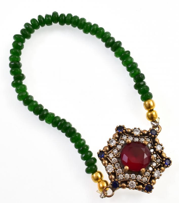 Beschreibung: Aranyozott ezüst(Ag) kövekkel gazdagon kirakott karkötő középrész, gumírozott pánttal, jelzett, bruttó: 11,12 g
