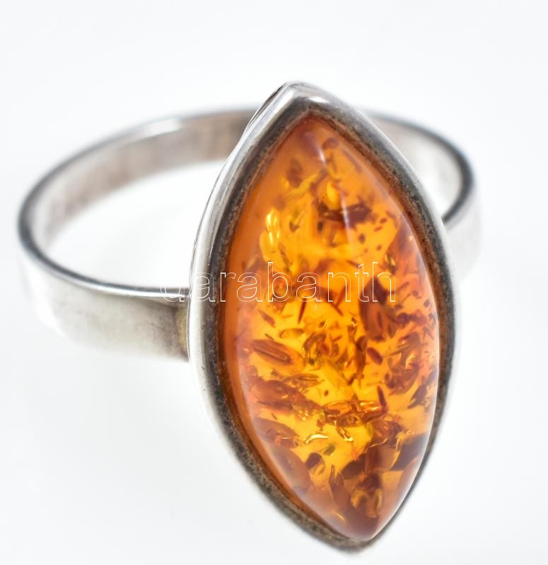 Ezüst (Ag) gyűrű borostyán utánzattal. Jelzett. 2,7 g m: 52 https://www.darabanth.com/de/397-Fernauktion/397.0/Juwelen/Juwelen~2000019/Ezust-Ag-gyuru-borostyan-utanzattal-Jelzett-2-7-g-m-52~II2414354