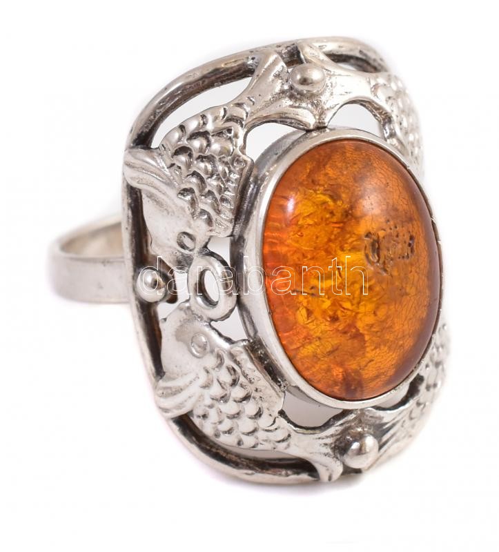 Ezüst (Ag) gyűrű halacskás díszítéssel, borostyán kővel 4,91 g m: 54 https://www.darabanth.com/de/397-Fernauktion/397.0/Juwelen/Juwelen~2000019/Ezust-Ag-gyuru-halacskas-diszitessel-borostyan-kovel-4-91-g-m-54~II2419123