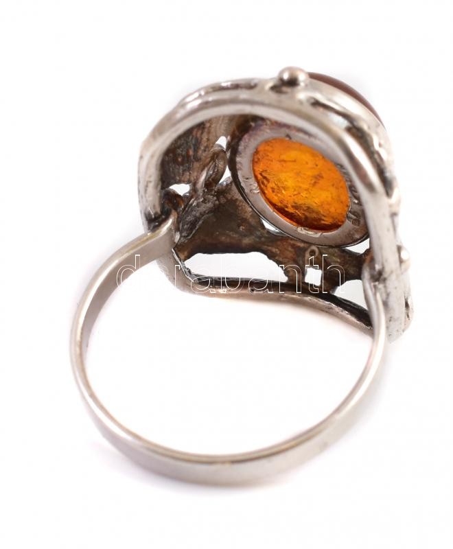 Beschreibung: Ezüst (Ag) gyűrű halacskás díszítéssel, borostyán kővel 4,91 g m: 54