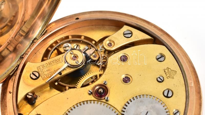 L.U.C. (Chopard) svájci zsebóra, jelzett 14K arany (Au) tokkal, a tokon helyenként kisebb karcolásokkal. Működő, jó állapotú, jelzett szerkezettel, másodpercmutatóval. Törött üveggel. Bruttó: 89 g, d: 50 mm