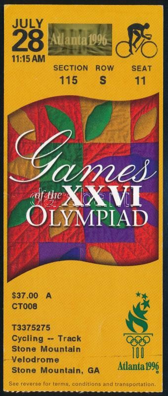 1996 Az atlantai olimpia belépőjegye, ellenőrzőszelvény nélkül https://www.darabanth.com/de/397-Fernauktion/397.0/Kunst-Dokumente-andere-Sammelgebiete/Dokument~500018/1996-Az-atlantai-olimpia-belepojegye-ellenorzoszelveny-nelkul~II2421316
