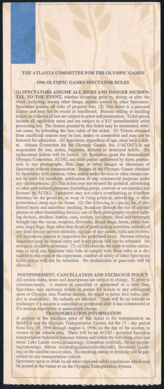 Beschreibung: 1996 Az atlantai olimpia belépőjegye, ellenőrzőszelvény nélkül