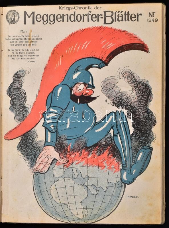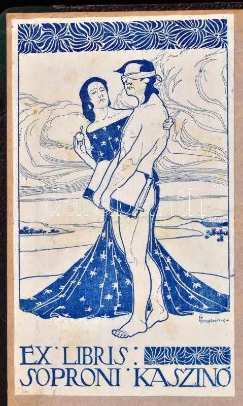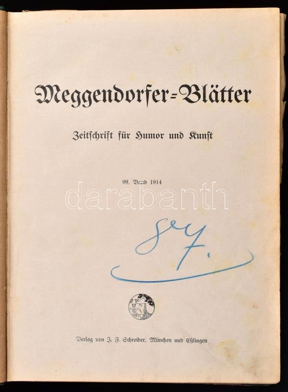 1917 Meggendorfer -Blätter. Zeitschrift für Humor und Kunst. 99. Band Nr. 1240-1253. 1914. okt. 1.-dec. 31. München-Esslingen,1914,J. F. Schreiber, 4+224 p. Német nyelven. Gazdag képanyaggal illusztrált. Átkötött kissé kopott félvászon-kötésben. Ágoston Ernő (1889-1957): Ex libris Soproni Kaszinó, klisé, papír, jelzett a klisén, 13×7,5 cm