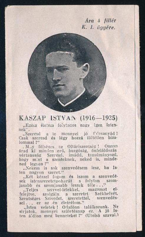 1943 Kaszap István (1916-1935) jezsuita novícius boldoggá avatásáért p... https://www.darabanth.com/de/397-Fernauktion/397.0/Kunst-Dokumente-andere-Sammelgebiete/Drucksachen~500031/1943-Kaszap-Istvan-1916-1935-jezsuita-novicius-boldogga-avatasaert-protezsalo-kis-prospekt~II2422530