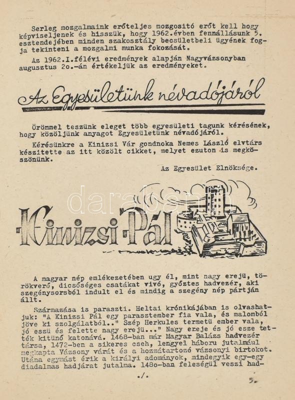 1962 A Kinizsi természetbarát egyesület híradója 16p https://www.darabanth.com/de/397-Fernauktion/397.0/Kunst-Dokumente-andere-Sammelgebiete/Drucksachen~500031/1962-A-Kinizsi-termeszetbarat-egyesulet-hiradoja-16p~II2422273